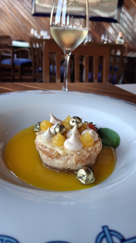 Quinto tiempo: Para culminar, disfrutarás de un delicioso pie de limón San Angelo, maridado con Pinot Grigio, Italia.